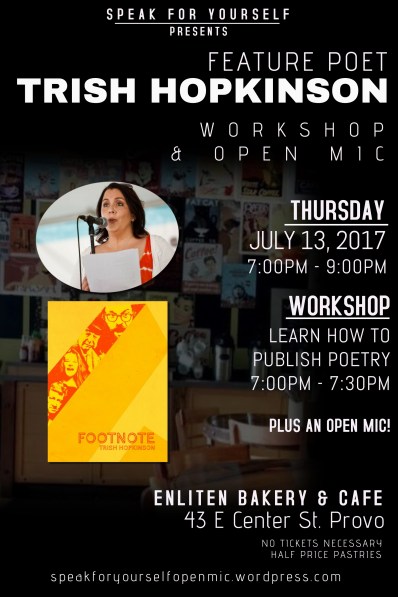 Speak for Yourself Open Mic and Enliten Bakery and Cafe are pleased to present local poet and blogger Trish Hopkinson!