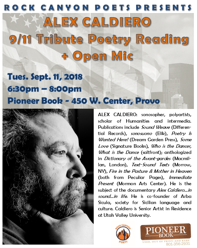 Alex Caldiero poetry reading – On Tuesday, October 9th, poet Alex Caldiero presents “Close Encounters of the Literary Kind: A Performative Memoire of the Uncanny Nature of Books” at Ken Sanders Rare Books in conjunction with the Utah Humanities Book Festival, click here for a full schedule of events through Oct.