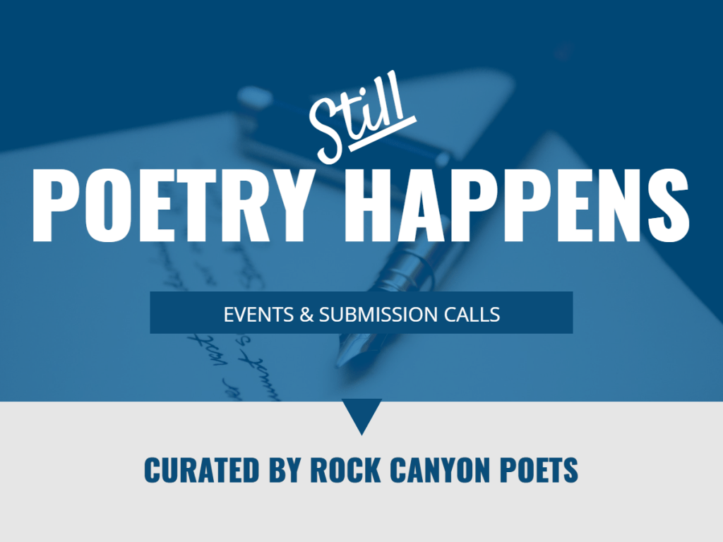 Welcome to the Utah-focused list of Poetry STILL Happens, brought to you by Rock Canyon Poets. We’re now keeping a running list that will be updated regularly to help you get a dose of poetry by attending both in-person and online events, prompts and resources for writing your own poems, and submission calls.