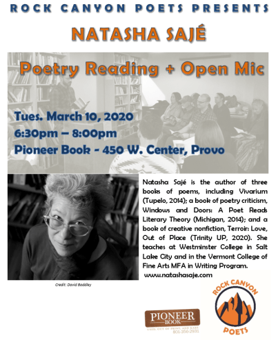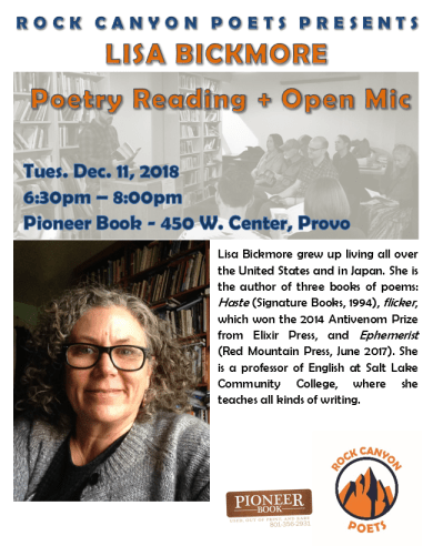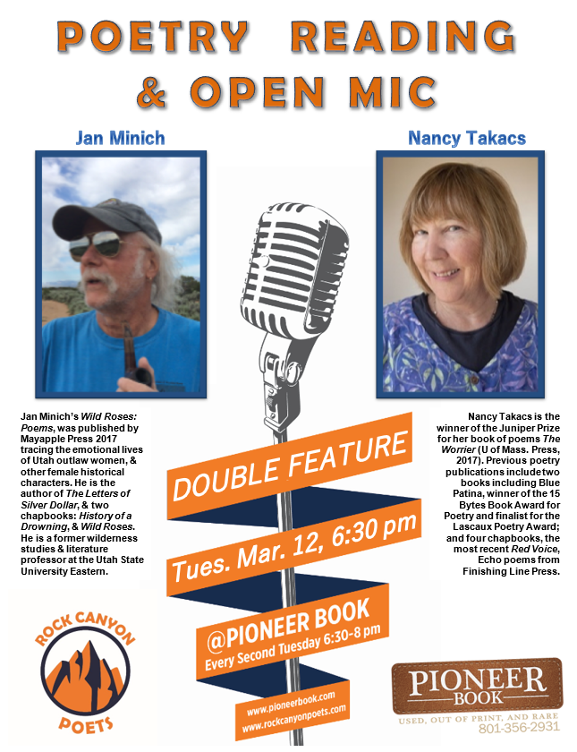 Don’t miss two incredible Utah poets: Nancy Takacs and Jan Minich! Both former professors at Utah State University Eastern.