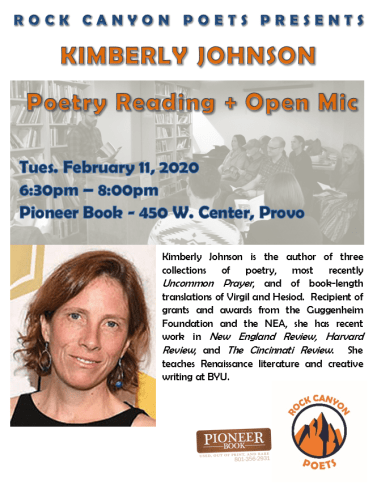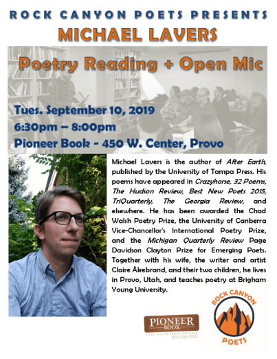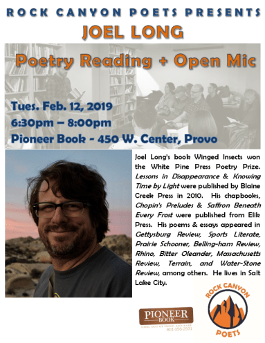 Takacs and Minich visit Provo as guests of the Rock Canyon Poets. The reading is open to the general public. For more information, contact the Rock Canyon Poets, rockcanyonpoets@gmail.com.