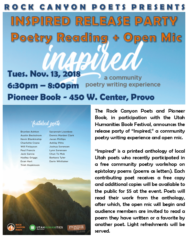 For more information, contact the Rock Canyon Poets, rockcanyonpoets@gmail.com.